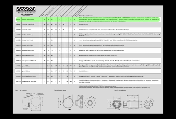 - Convient aux cuvettes de pédalier à roulement externe de 16 crans x 44 mm de diamètre et aux écrous de blocage de disque de frein à disque.