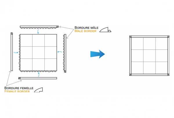 - Possibilité d’assembler des bordures inclinées sur le contour de votre zone de dalles