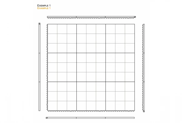 - Dimensions de la zone utile : 915 x 915 x 16mm