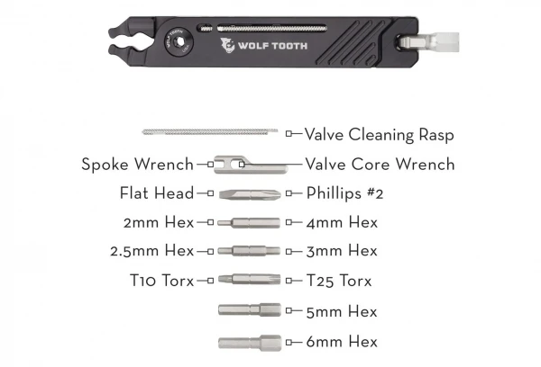Le Wolf Tooth 8-Bit Pack Pliers est un multi-Outils léger doté de 17 fonctions. Huit accessoires s’emboîtent à l’intérieur des poignées de la pince à maillons rapides à l’aide d’aimants et d’un système de rangement intelligent. Ces accessoires s’insèrent ensuite dans une tête pivotante de 8 mm, dotée d’une ouverture de 4 mm pour les embouts hexagonaux, ce qui ajoute des fonctionnalités à la pince à maillons déjà polyvalente. Ce nouvel outil multifonction a été créé pour résoudre presque toutes les réparations mineures, en VTT et sur route.