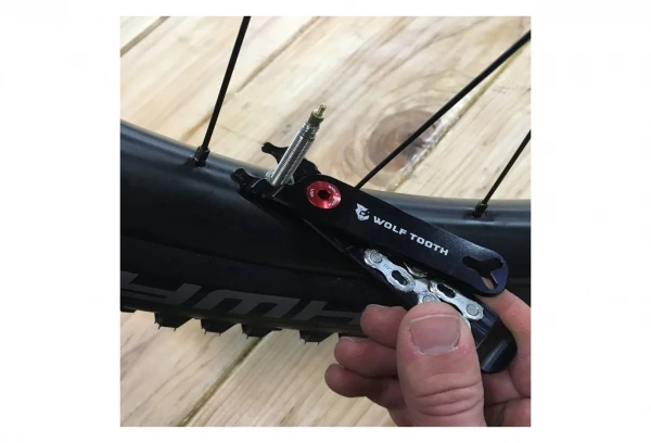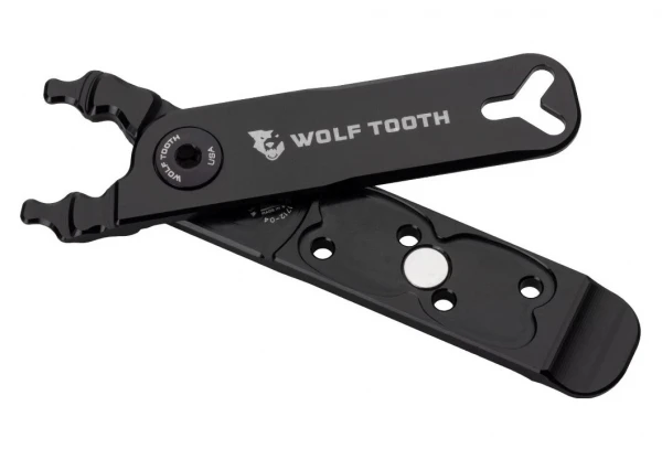 Le Wolf Tooth Pack Pliers – Master Link Combo Pliers est un multi-outil développé pour fournir des fonctions qui ne se trouvent pas sur un outil multifonction classique. Il est léger et compact pour que vous puissiez le transporter facilement avec vous. Cet outil sert de démonte-pneu, démonte-obus Presta, clé pour écrou de valve et pince à maillon rapide. Il fournit également un stockage intégré pour deux attaches rapides, afin que vous soyez toujours prêt en cas problème lors d’une sortie. Les aimants maintiennent fermement les attaches rapides en place et referment automatiquement l’outil.