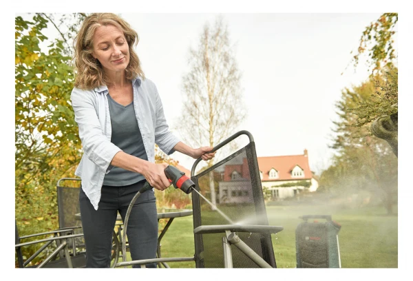 Faites attention à ce que vous aimez. Nettoyage sans fil à domicile ou en déplacement soit via le raccordement permanent à l’eau, soit avec le réservoir intégré de 15 litres. Idéal pour prendre soin de votre propriété de valeur des voitures et motos aux installations extérieures et aux vélos. Utilisation polyvalente: quatre modes de pulvérisation différents, pression d’eau réglable et SmartBrush. Une poignée extensible et des roues robustes permettent un assemblage rapide et des manœuvres faciles.