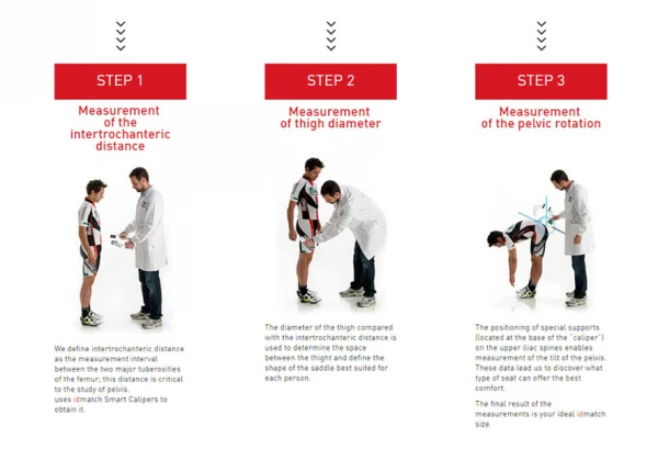 Selle Italia propose son propre outil de mesure afin de définir votre correspondance IdMatch pour choisir votre selle. Le Smart Caliper est doté d’un système de capteurs et de calculs efficaces pour adapter la morphologie du cycliste à la selle de la marque correspondante, avec une grande simplicité.