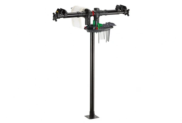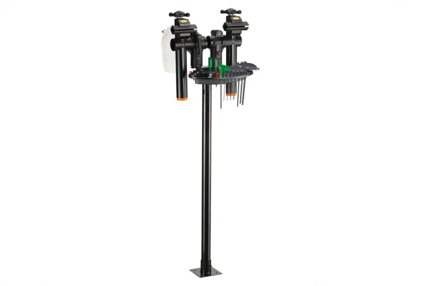 Pied d’atelier IceToolZ Xpert avec une double pince et porte rouleau pour papier.