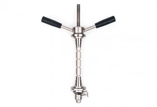 Le HHP-2 permet également de tenir fermement les clefs pour cuvettes fixes pendant l’installation ou démontage des boîtiers de pédaliers réglables. Le système de blocage rapide permet d’installer et enlever l’outil en un clin d’œil, les longs leviers donnent un couple important et les bagues coniques échelonnées permettent une installation parfaite des cuvettes.